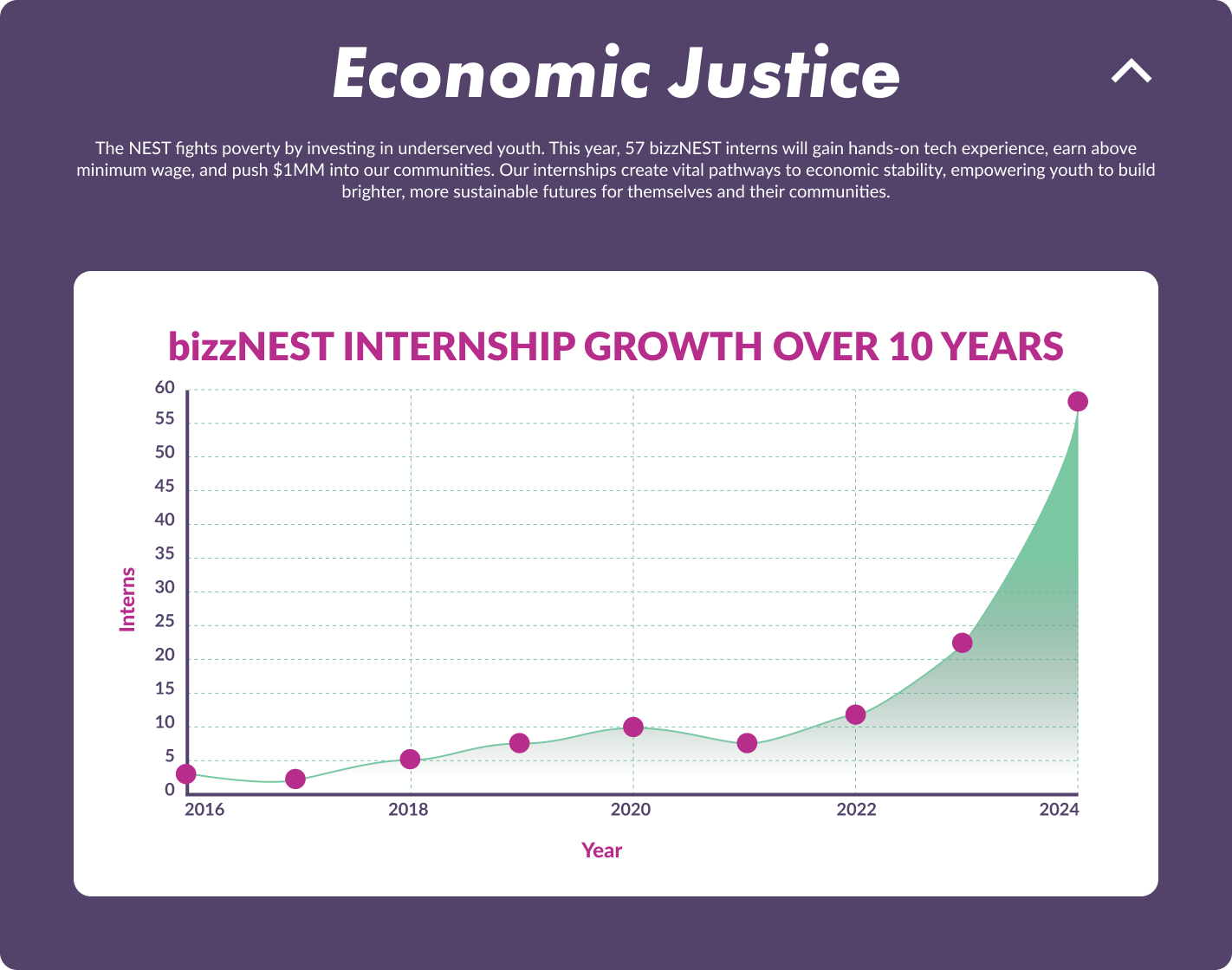 The 2024 Impact Report was created to show sponsors and donors the measurable impact Digital NEST has made in communities over the past 10 years. Designed as an interactive webpage alongside a printed mailer, the report highlights key milestones, data, and stories—communicated through clean layouts, custom charts, and a strong narrative flow that celebrates a decade of growth and community investment.